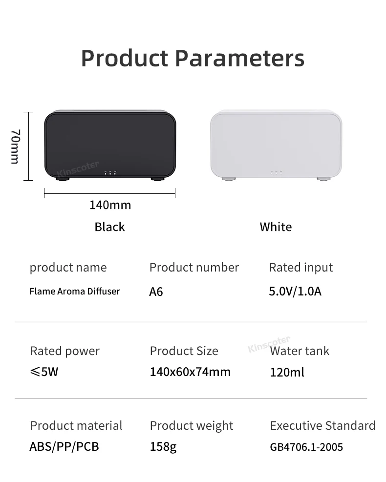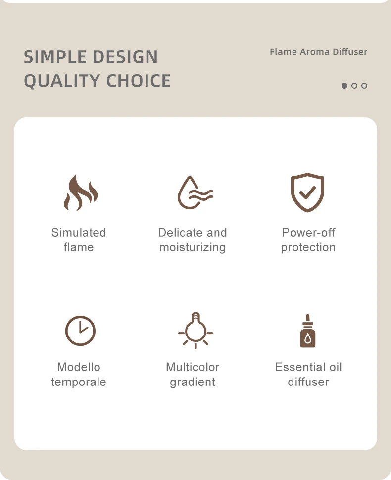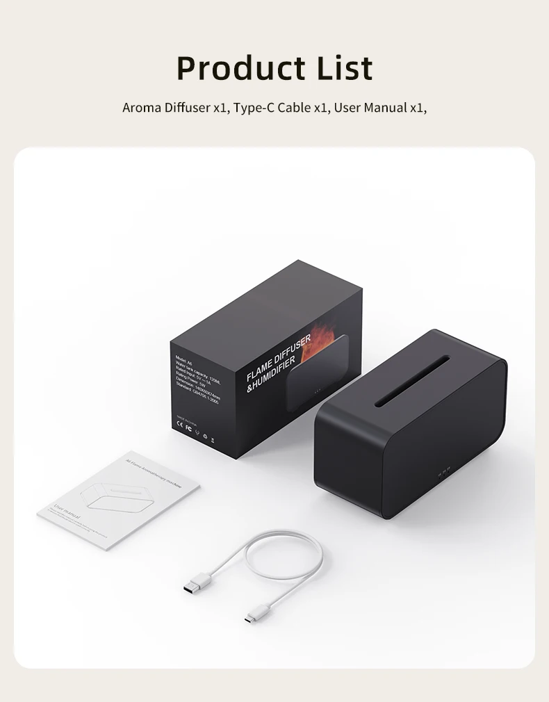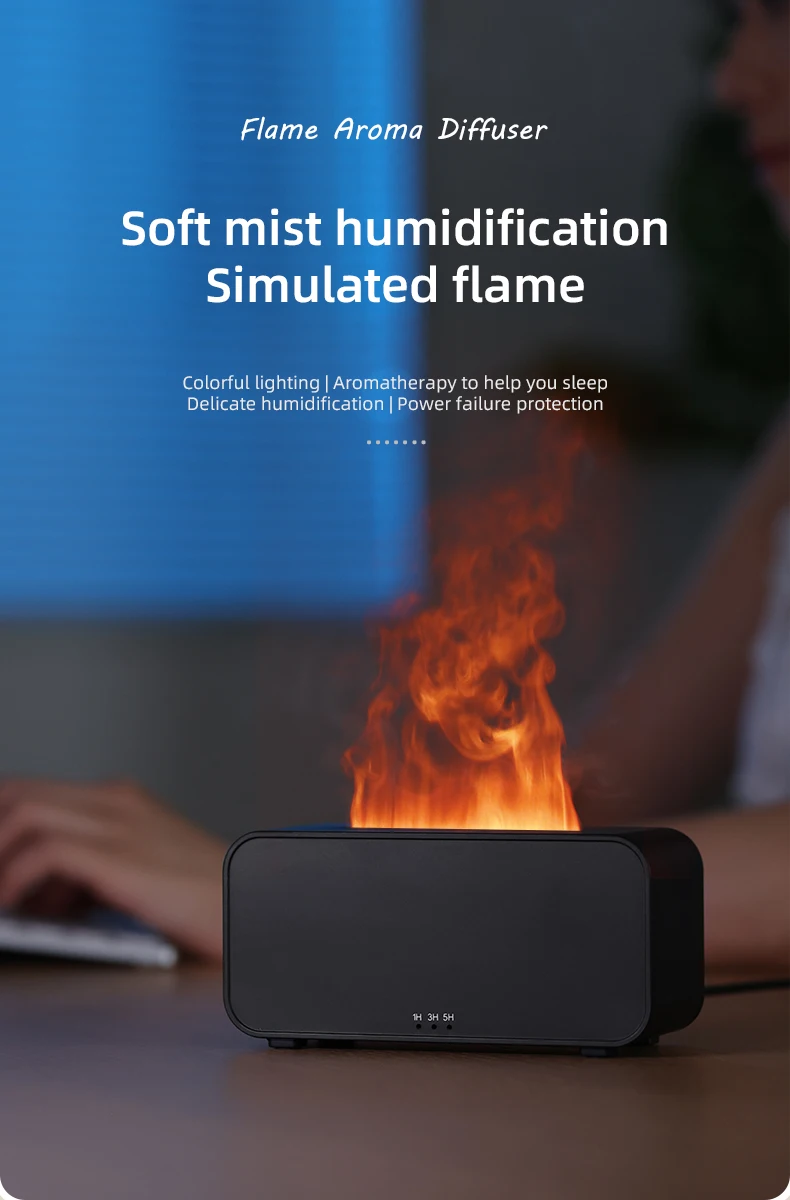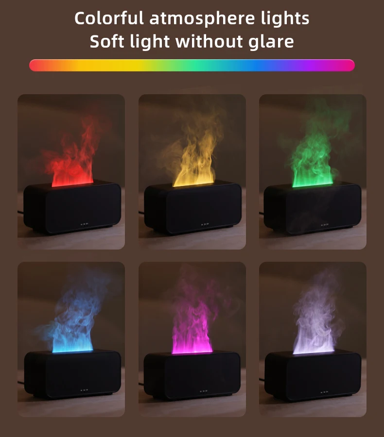 Função de nebulização: pressione o botão liga/desliga uma vez para ativar a nebulização e, simultaneamente, acender a luz ambiente de chama; função de luz de sete cores: com a nebulização ativada, pressione o botão liga/desliga mais uma vez para...