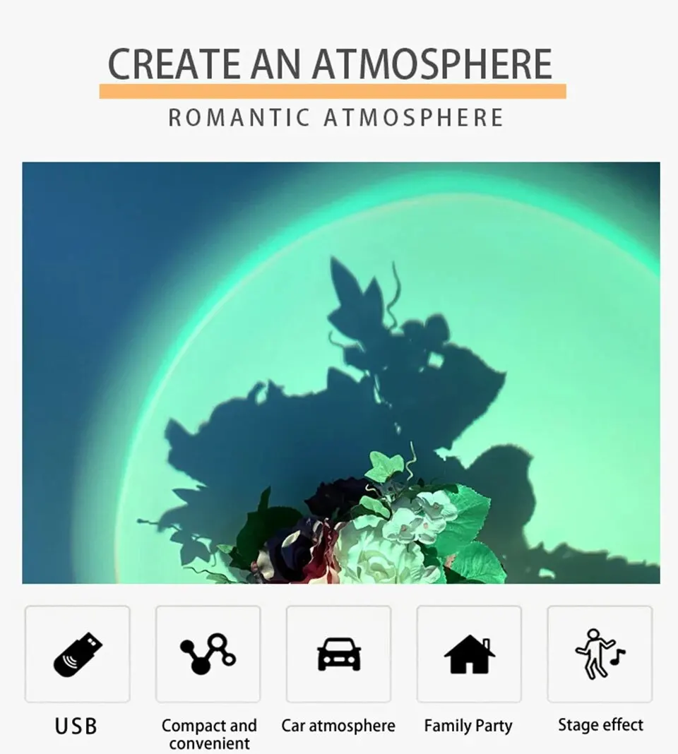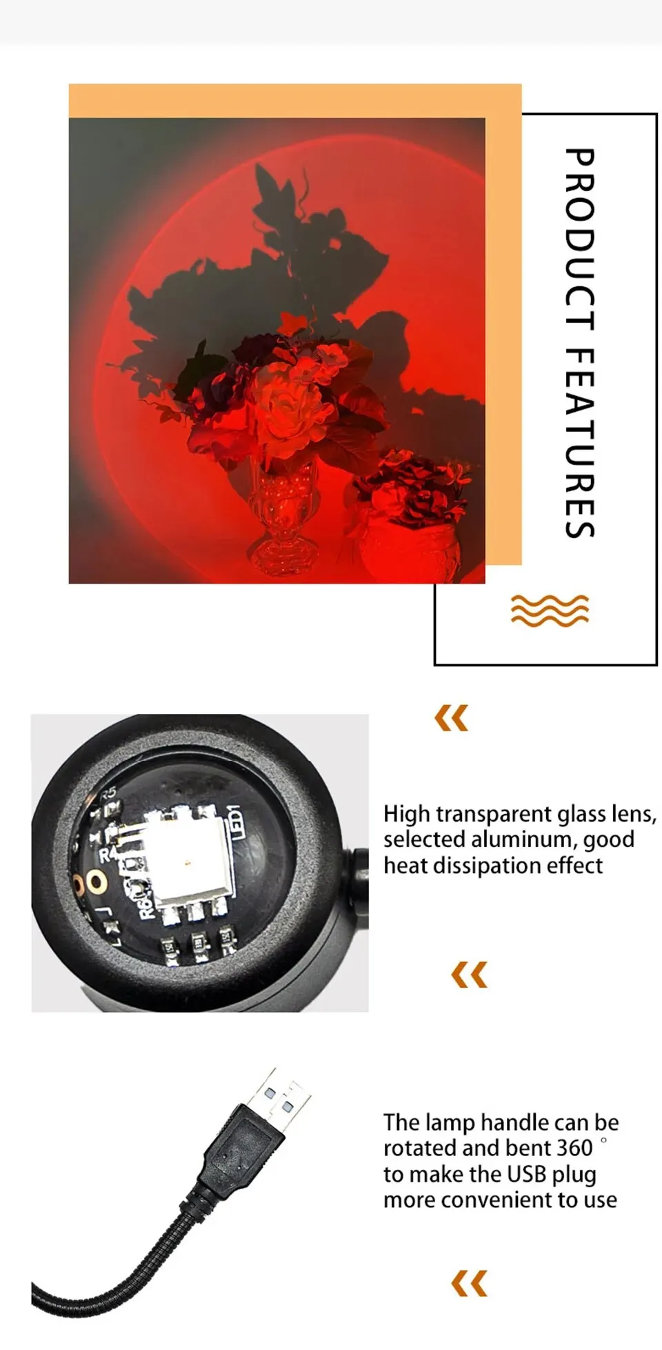 1.Crie um clima melhor em diferentes ambientes.2.Tomada USB, Plug & Play, fácil e amplamente utilizada3.Vários modos a serem escolhidos (14 modos estão disponíveis)4.360° rotação, ajustável para qualquer ângulo5.Pode executar outras funções de iluminação